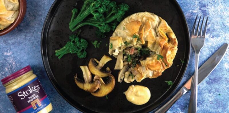 The flavours from our Cider & Horseradish Mustard add deep layers to the roasting veg. As well as the tingling crunch of yellow and black mustard seeds, the crisp English cider and lingering notes of horseradish are very clever additions. Resident Chef, Andy uses the complexities of our wholegrain mustard in many ways – HERE in a recipe for Roast Chicken & French-Style Peas. The chicken is so moist and the peas absolutely delicious.Our Dijon Mustard has a deceptive strength – a gentle giant of flavour. Try this White Bean, Mushroom & Pancetta Strudel. Another fabulous forkful from Andy.As for our Classic English Mustard, well ours is a twist on the classics you might know.