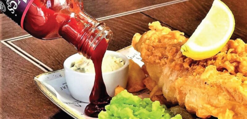 Brown the shanks in a deep casserole with the chopped Holy Trio – onion, carrots and celery. Add a bottle of dark ale, and top off with chicken of beef stock. Add depth of flavour with our Sweet Mint Sauce and rich tomatoey Real Tomato Ketchup (a couple of spoons and shakes of each).